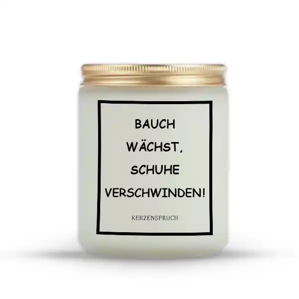 🛒 Jetzt Kerze mit dem Spruch „BAUCH WÄCHST, SCHUHE VERSCHWINDEN!“ bestellen – für Geborgenheit, Leichtigkeit und liebevolle Stimmung im Babyzimmer.