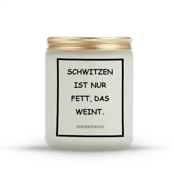 Die Botschaftskerze mit dem frechen Spruch „SCHWITZEN IST NUR FETT, DAS WEINT.“ ist der perfekte Begleiter für alle, die sich mit Humor und Energie motivieren wollen. Ob beim Workout, im Büro oder einfach als Reminder an dein Ziel – diese Kerze bringt dich zum Schmunzeln und Anpacken. Der frische, klare Duft Meeresgold (Bergamotteblatt & Eukalyptus) sorgt für einen klaren Kopf und belebende Frische – ganz ohne Fitnessstudio.