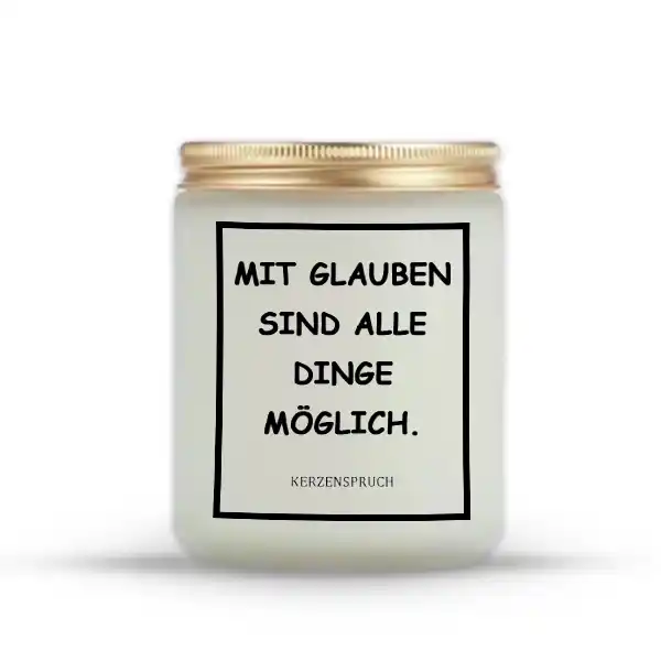 Christliche Kerzen bestellen bedeutet, Licht und Glauben miteinander zu verbinden. Mit dem Spruch „MIT GLAUBEN SIND ALLE DINGE MÖGLICH.“ erhältst du eine Kerze, die nicht nur den Raum erhellt, sondern auch das Herz berührt.