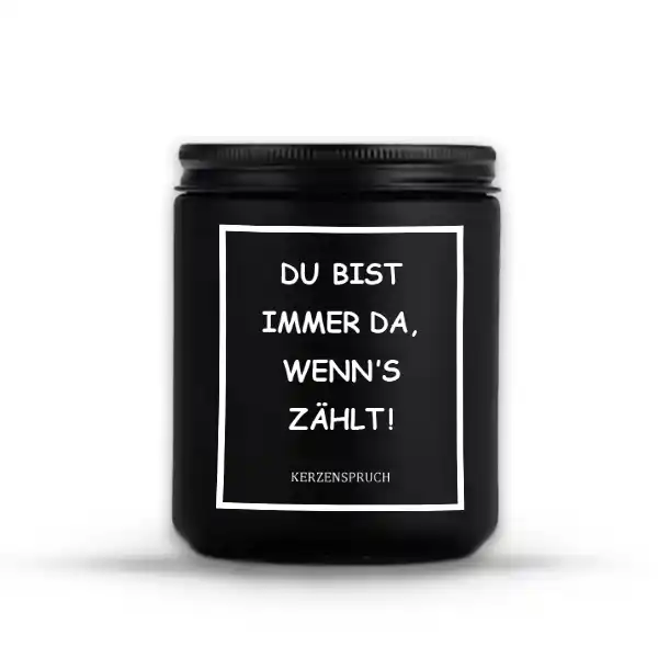 Mit der Kerze schenkst du ein Symbol der Nähe und des Vertrauens. Das Zitat „DU BIST IMMER DA, WENN’S ZÄHLT!“ erinnert daran, wie wichtig es ist, Menschen an seiner Seite zu wissen, auf die man sich verlassen kann.