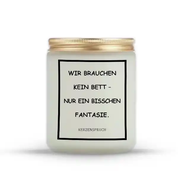 Der Spruch „WIR BRAUCHEN KEIN BETT – NUR EIN BISSCHEN FANTASIE.“ vermittelt nicht nur Humor, sondern auch eine tiefe Wertschätzung für eure einzigartige Verbindung. Es geht nicht nur um den körperlichen Moment, sondern auch um die fantasievollen, magischen Erlebnisse, die ihr miteinander teilt. Diese Duftkerze ist nicht nur ein praktisches Geschenk, sondern auch ein Ausdruck deiner Liebe und Kreativität. Sie zeigt, dass du an die kleinen Dinge glaubst, die eine Beziehung besonders machen.