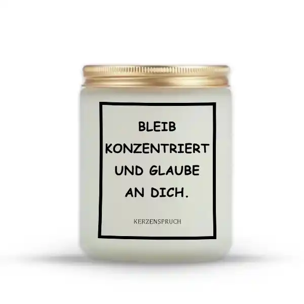 🌙🕯️ Duftkerze mit Gute Nacht – „BLEIB KONZENTRIERT UND GLAUBE AN DICH.“ Dieser Spruch ist eine wunderbare Erinnerung daran, dass jede Nacht auch die Chance ist, sich zu erholen und gestärkt in den nächsten Tag zu starten. Du bist der Architekt deines eigenen Erfolgs, und auch in der Nacht gibt es Momente der Ruhe, in denen du dich auf dich selbst besinnen kannst. Lass diese Kerze dir helfen, dein Vertrauen in dich selbst zu stärken und dich auf den nächsten Tag vorzubereiten. Ein beruhigender Gedanke vor dem Schlafen, der dir hilft, positive Energie für morgen zu sammeln.