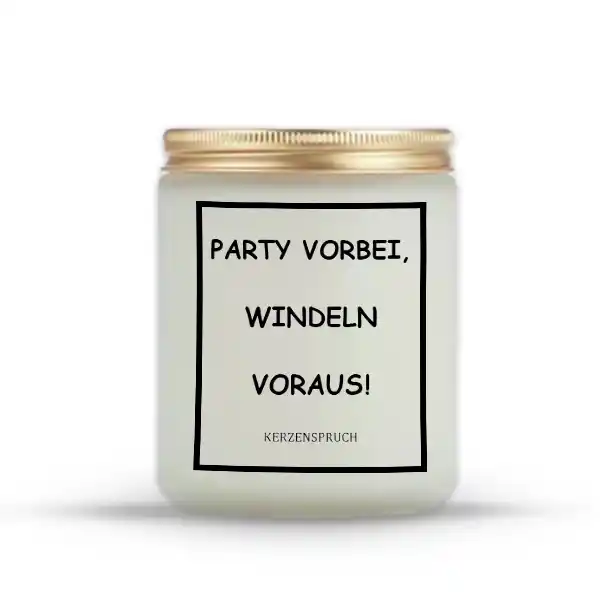🍼 Duftkerzen als Geburtsgeschenk im Shop – „PARTY VORBEI, WINDELN VORAUS!“