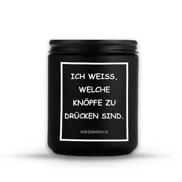 Der Spruch „ICH WEIß, WELCHE KNÖPFE ZU DRÜCKEN SIND.“ gibt der Kerze eine kraftvolle, persönliche Note. Er erinnert dich daran, dass du die Kontrolle hast und deine Entscheidungen mit Selbstvertrauen triffst. Diese Botschaft motiviert und stärkt dich in allen Lebenslagen.