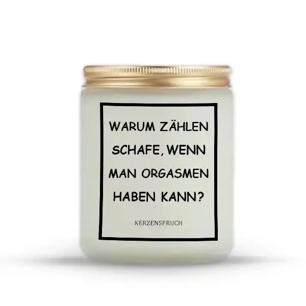 Unsere Duftkerzen für Lust entfachen Sinnlichkeit und Leidenschaft in deinem Zuhause. Mit dem frechen Motto „WARUM ZÄHLEN SCHAFE, WENN MAN ORGASMEN HABEN KANN?“ bringen sie Spaß, Energie und Verführung in jeden Raum. Perfekt, um die Stimmung zu heben und intensive Momente zu schaffen, die im Gedächtnis bleiben.