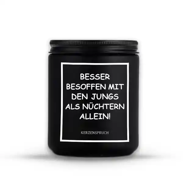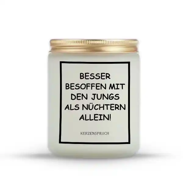 Hol dir die perfekten Duftkerzen für deine nächsten geselligen Abende. Schaffe eine Atmosphäre, die Freundschaft, Spaß und Genuss miteinander verbindet. Bestelle jetzt und mach deine Party unvergesslich. „BESSER BESOFFEN MIT DEN JUNGS ALS NÜCHTERN ALLEIN!“ – zeig, dass die besten Momente gemeinsam entstehen.