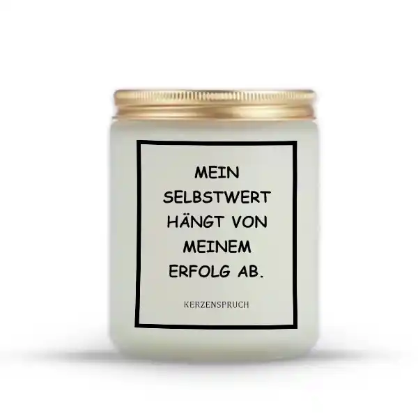 Bestelle deine Duftkerze mit dem tiefgründigen Spruch „MEIN SELBSTWERT HÄNGT VON MEINEM ERFOLG AB.“ und dem warmen Duft „Honig Kuss“ jetzt online. Schaffe dir ein Zuhause voller Liebe, Selbstbewusstsein und angenehmer Düfte.