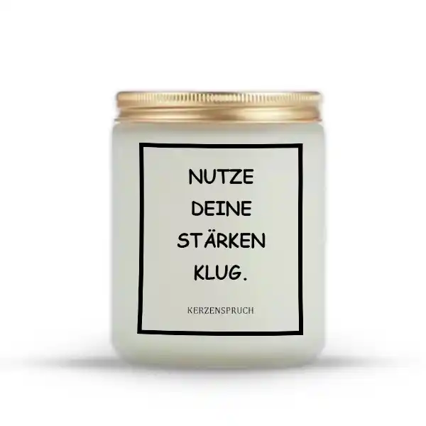 Mit den Duftkerzen in 7 Düfte kannst du je nach Stimmung und Anlass das passende Aroma wählen. Ob beruhigend, anregend oder erfrischend – die sieben verschiedenen Düfte sorgen für Abwechslung und Wohlbefinden. Der Spruch „NUTZE DEINE STÄRKEN KLUG.“ erinnert dich daran, deine Ressourcen bewusst einzusetzen und dich selbst zu stärken.