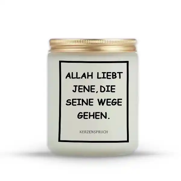 Bestelle „ALLAH LIEBT JENE, DIE SEINE WEGE GEHEN.“ jetzt und bereichere dein Zuhause mit einer Kerze, die mehr als Licht spendet – eine Kerze, die Seele berührt. Duftkerzen mit Basmala sind eine Einladung, deinen Weg mit Ruhe und Kraft zu gehen. Jetzt kaufen und die spirituelle Stimmung erleben!