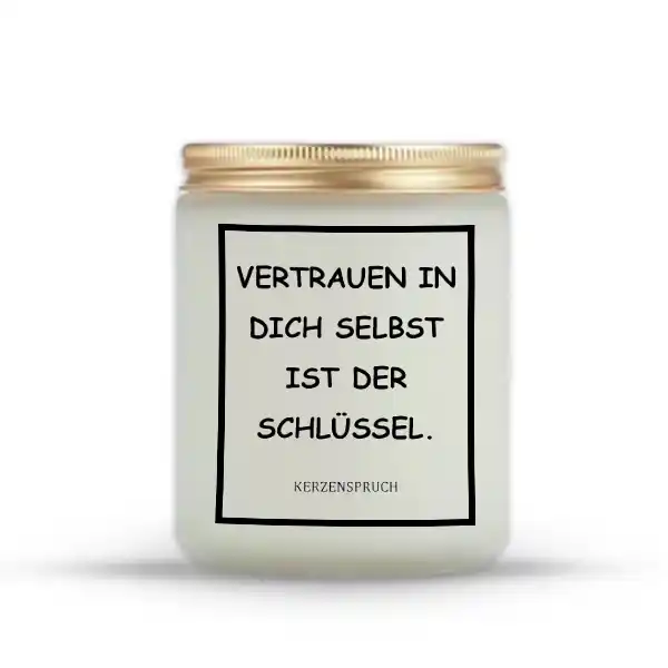 Ob zum Geburtstag, als Dankeschön oder einfach als liebevolle Aufmerksamkeit – Duftkerzen mit Geschenksprüchen sind ein Geschenk, das sowohl das Herz als auch die Sinne anspricht. Der Spruch „VERTRAUEN IN DICH SELBST IST DER SCHLÜSSEL.“ macht die Kerze zu einem wertvollen Begleiter für den Alltag.