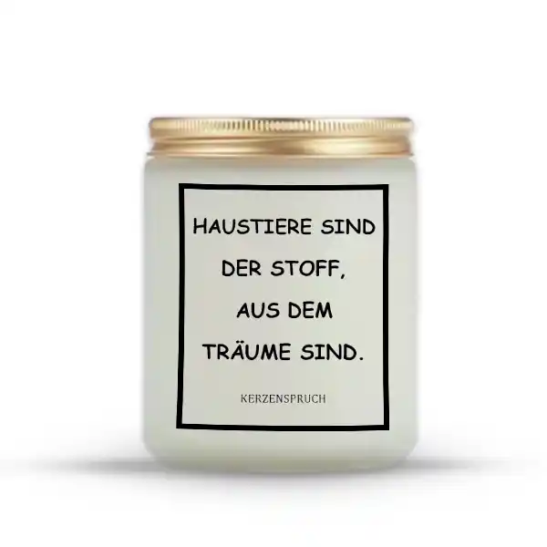 Mit Duftkerzen mit Kokosöl für Tiere wie „HAUSTIERE SIND DER STOFF, AUS DEM TRÄUME SIND.“ schenkst du Wärme und Sicherheit in einem.