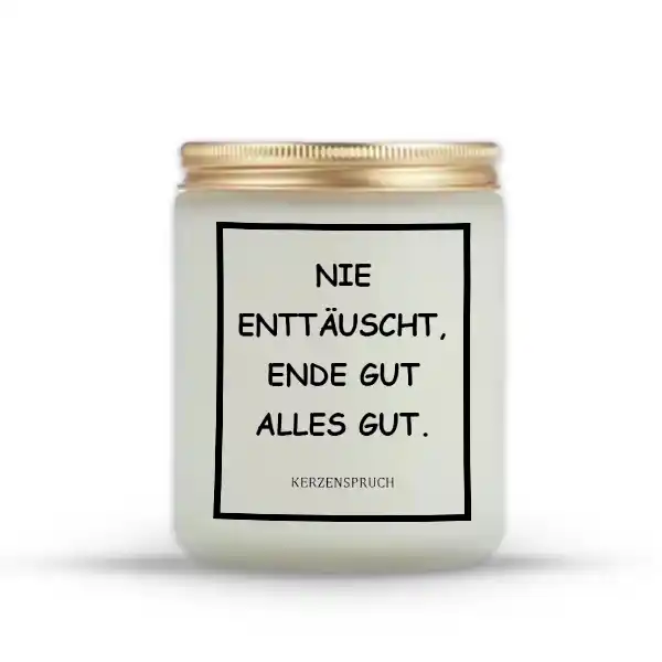 Der Spruch „Nie enttäuscht Ende“ erinnert daran, dass manche Dinge einfach immer verlässlich sind – wie diese Duftkerzen, die dein Zuhause in Wohlfühlatmosphäre tauchen und dir eine konstante Begleitung schenken.