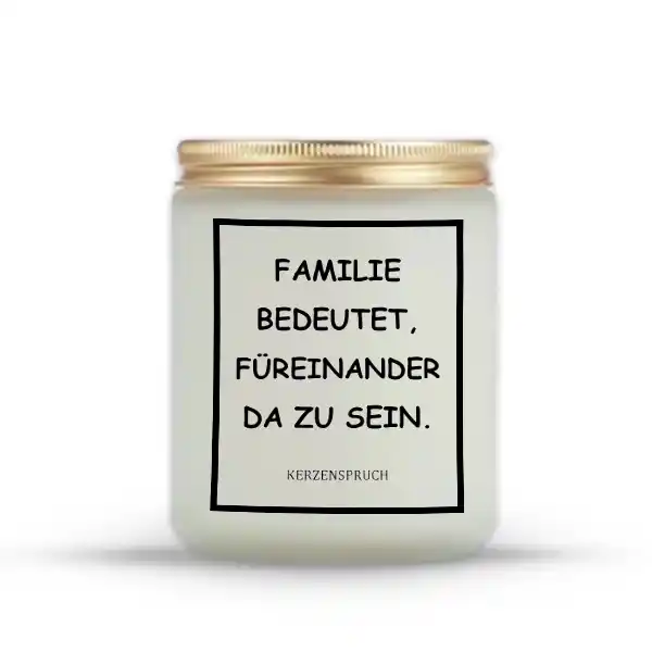 Mach dein Zuhause noch wärmer – mit einer Kerze, die mehr kann als nur leuchten. Bestelle jetzt deine Familie Duftkerze mit dem Spruch „FAMILIE BEDEUTET, FÜREINANDER DA ZU SEIN.“ und bring Herz, Duft und Licht in dein Leben – oder in das der Menschen, die dir am wichtigsten sind.