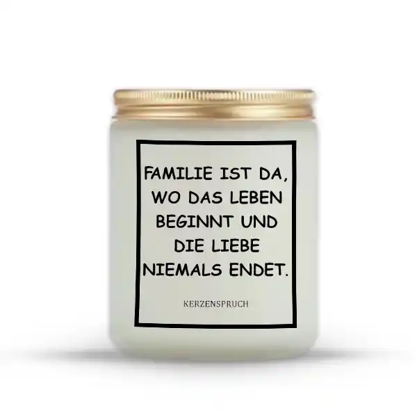 „Familie ist da, wo das Leben beginnt und die Liebe niemals endet“ steht am Anfang und prägt den gesamten Text. Unsere Familienkerzen als Geschenk finden bieten dir eine liebevolle Möglichkeit, deine Wertschätzung für Familie sichtbar zu machen. Mit diesem besonderen Spruch bringst du Wärme und Zusammenhalt in jedes Zuhause.