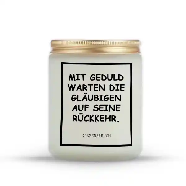 Wenn du im Gebetskerzen Islam Shop eine Kerze suchst, die dich bei deinen Gebeten mit innerer Ruhe und Zuversicht begleitet, ist die Kerze „MIT GEDULD WARTEN DIE GLÄUBIGEN AUF SEINE RÜCKKEHR.“ genau das passende Produkt für dich. Diese Kerze verbindet eine tiefgründige spirituelle Botschaft mit elegantem Design und unterstützt dich dabei, deine Geduld im Glauben zu stärken.
