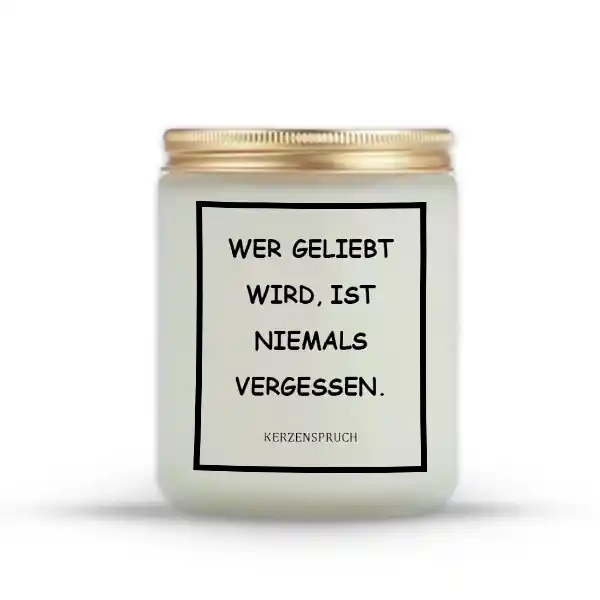 Bestelle dein Gedenklicht mit dem beruhigenden Duft „Waldgeheimnis“ (Bambus & Grüner Tee) und dem tiefsinnigen Spruch „WER GELIEBT WIRD, IST NIEMALS VERGESSEN.“ noch heute. Schaffe dir einen Ort des Friedens und der ewigen Erinnerung.