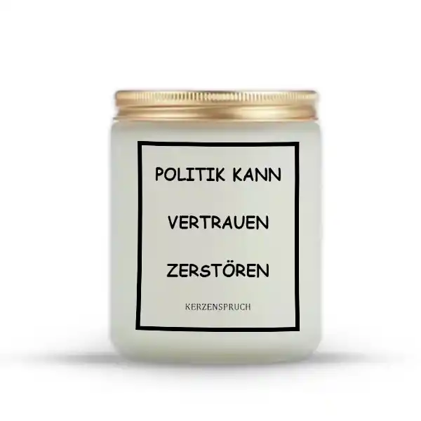 Unsere Gerechtigkeits Kerzen bestellen sind mehr als nur ein Lichtspender – sie sind ein Symbol für Mut, Wahrheit und das Streben nach einer besseren Welt. Mit dem kraftvollen Motto „POLITIK KANN VERTRAUEN ZERSTÖREN“ erinnern diese handgegossenen Kerzen daran, wie wichtig ehrliche Worte und verantwortungsbewusstes Handeln sind. Sie bringen eine klare Botschaft in dein Zuhause und schaffen Raum für nachdenkliche Momente.
