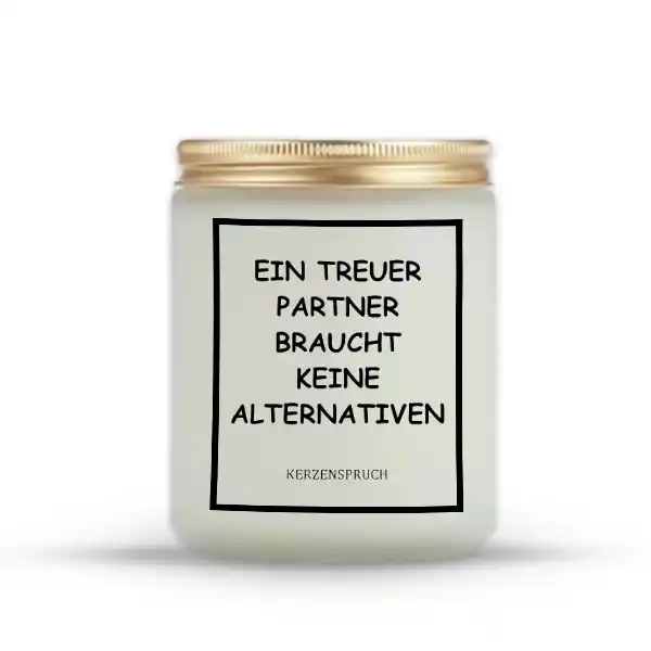 🛒 Bestelle jetzt deine handgefertigte Kerze „EIN TREUER PARTNER BRAUCHT KEINE ALTERNATIVEN.“ und bring Stil, Wärme und Charakter in dein Zuhause.