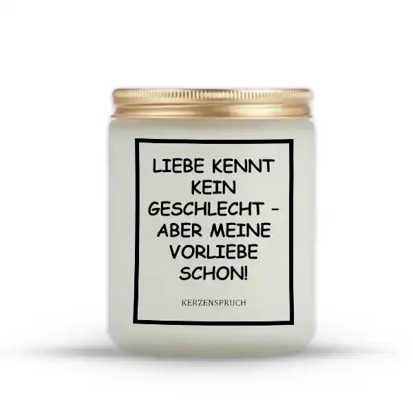 Handgegossene LGBTQ Kerzen setzen ein farbenfrohes und kraftvolles Zeichen für Akzeptanz und Identität. Mit „LIEBE KENNT KEIN GESCHLECHT – ABER MEINE VORLIEBE SCHON!“ erhältst du eine Kerze, die sowohl Individualität als auch Zusammenhalt ausdrückt. 🕯️🌈 Diese Botschaft feiert die Vielfalt und unterstützt mutige Lebensentwürfe.