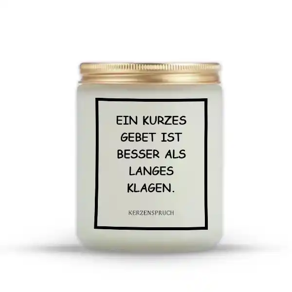 Der Spruch „EIN KURZES GEBET IST BESSER ALS LANGES KLAGEN.“ erinnert daran, wie wertvoll aufrichtige, konzentrierte Worte sind. Diese Botschaft spiegelt sich in der ruhigen Flamme der Kerze wider und hilft, den Geist zu fokussieren und das Herz zu öffnen.