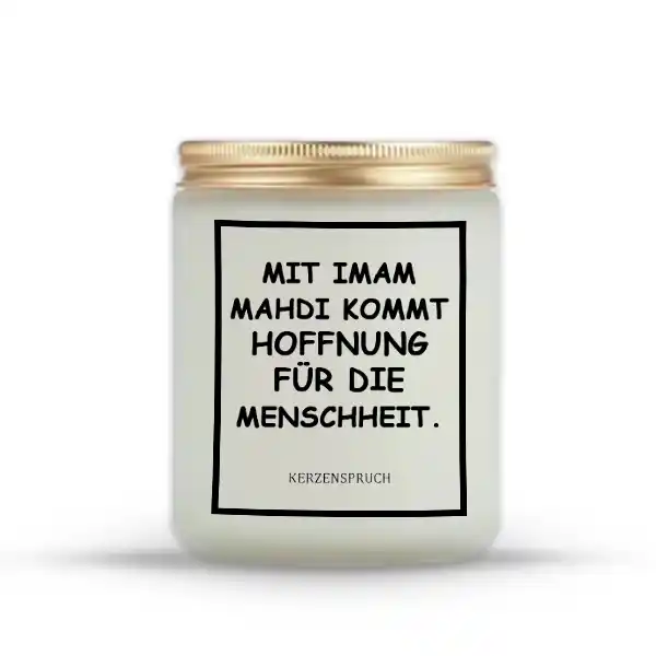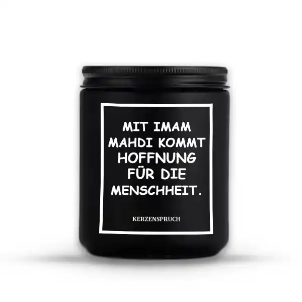 Wenn du Dekokerzen suchst, findest du hier besondere Kerzen, die deinen Wohnraum nicht nur verschönern, sondern auch eine tiefgründige Botschaft vermitteln. Die Kerze mit dem Spruch „MIT IMAM MAHDI KOMMT HOFFNUNG FÜR DIE MENSCHHEIT.“ symbolisiert den Glauben an eine bessere Zukunft und schenkt dir Momente der Zuversicht und des Friedens. 🕯️🌙