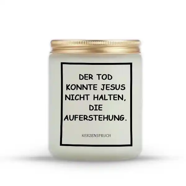 Der Jesus Glaubenskerzen Shop bietet eine besondere Auswahl an Kerzen, die weit über eine einfache Lichtquelle hinausgehen. Sie sind Ausdruck tiefen Glaubens, Hoffnung und spiritueller Kraft. Der Spruch „DER TOD KONNTE JESUS NICHT HALTEN, DIE AUFERSTEHUNG.“ steht im Zentrum dieser Kollektion und erinnert an das Wunder der Auferstehung, das Fundament des christlichen Glaubens. Diese Kerzen symbolisieren den Sieg des Lebens über den Tod und schenken Trost in schwierigen Zeiten.