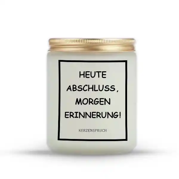 🛒 Bestelle jetzt deine Kerze für die Abschlussklasse „HEUTE ABSCHLUSS, MORGEN ERINNERUNG!“ und mache den Abschluss unvergesslich.