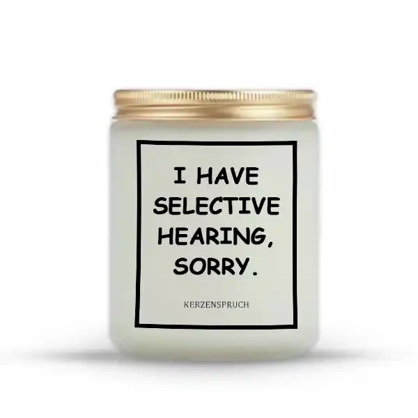 Kerze günstig kaufen bedeutet, deinem Zuhause eine gemütliche und stilvolle Atmosphäre zu verleihen – ohne dabei dein Budget zu sprengen. Mit dieser Kerze, die den humorvollen Spruch „I HAVE SELECTIVE HEARING, SORRY.“ trägt, bekommst du nicht nur ein Licht, sondern auch ein Statement. Sie bringt Wärme, Charakter und eine Portion Humor in jeden Raum.