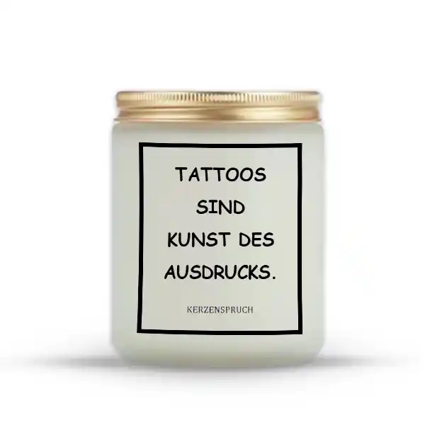 🛒 Jetzt deine Kerze mit humorvollem Spruch „TATTOOS SIND KUNST DES AUSDRUCKS.“ bestellen – für mehr Lachen, mehr Stil und mehr Persönlichkeit im Alltag.