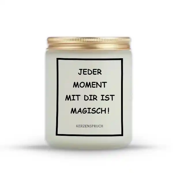 💖🕯️ Kerze mit Liebes Zitat – „JEDER MOMENT MIT DIR IST MAGISCH!“ Diese Kerze verströmt Liebe und Wärme, perfekt für dich und deinen Lieblingsmenschen.