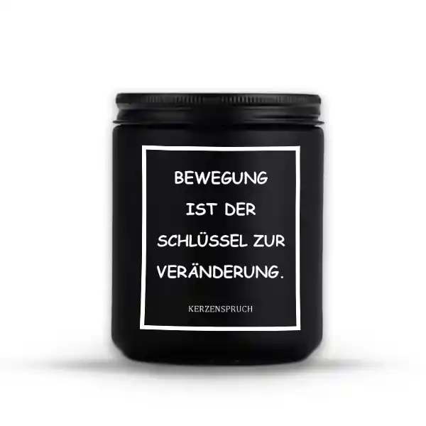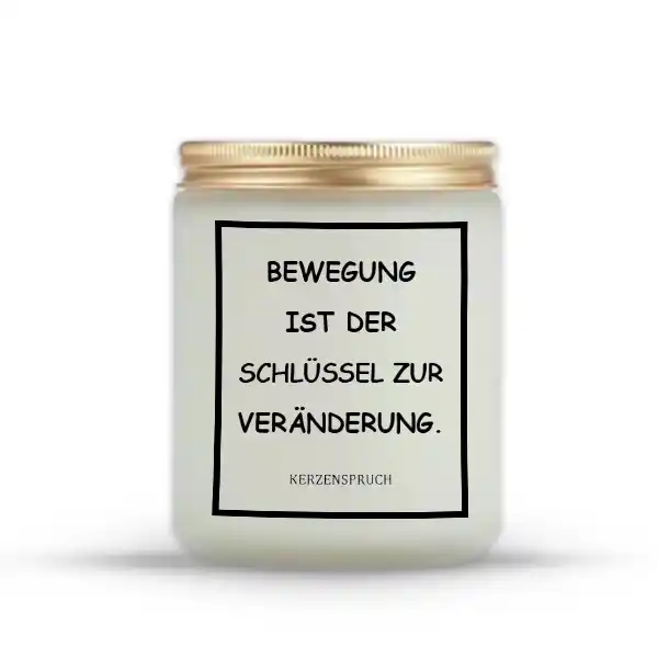 Suchst du ein Geschenk, das Inspiration und Kraft schenkt? Die Kerze mit motivierendem Spruch „BEWEGUNG IST DER SCHLÜSSEL ZUR VERÄNDERUNG.“ mit dem Duft Waldgeheimnis ist ideal für Menschen, die sich Entwicklung und Bewegung wünschen.