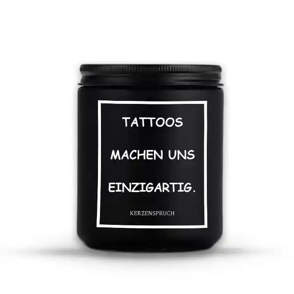 Zeige deine Dankbarkeit auf besondere Weise – mit der Kerze mit Spruch zum Danken. Sie bringt nicht nur Wärme und Licht in dein Zuhause, sondern ist auch ein Ausdruck deiner Wertschätzung. „TATTOOS MACHEN UNS EINZIGARTIG.“ – eine Erinnerung an das Einzigartige in jedem von uns.