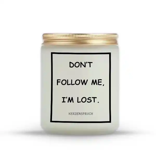 Kerze mit Sprüche in Englisch bringt nicht nur Licht, sondern auch Persönlichkeit in deinen Raum. Mit dem frechen Spruch „DON’T FOLLOW ME, I’M LOST.“ ist sie ein echter Hingucker – ehrlich, charmant und perfekt für alle, die über sich selbst lachen können.