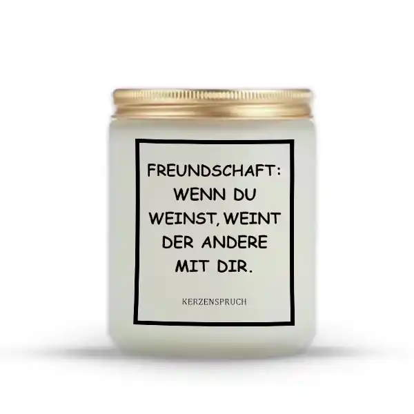 Kerzen als Freundschaft schenken sind der perfekte Weg, um deiner besten Freundin oder deinem besten Freund zu zeigen, wie viel sie dir bedeuten. Die wahre Freundschaft basiert auf Unterstützung, Vertrauen und den Momenten, die man zusammen teilt. Der Spruch „FREUNDSCHAFT: WENN DU WEINST, WEINT DER ANDERE MIT DIR.“ erinnert uns an die tiefe Bedeutung echter Freundschaft: immer füreinander da zu sein, in guten wie in schlechten Zeiten. Diese Kerze ist mehr als nur ein Geschenk, sie ist ein Symbol für all die wertvollen Momente, die ihr zusammen erlebt habt und noch erleben werdet.