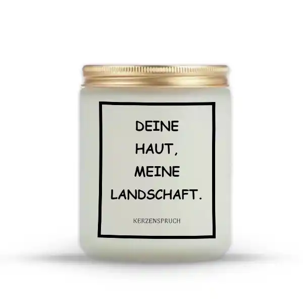„Kerzen als Geschenk für dein Lokal“ sind die perfekte Möglichkeit, deinem Raum eine besondere Atmosphäre zu verleihen. Der Spruch „DEINE HAUT, MEINE LANDSCHAFT.“ ist eine künstlerische und sinnliche Botschaft, die sofort die Aufmerksamkeit auf sich zieht und den Raum verführt. Diese Kerze ist nicht nur ein Lichtspender, sondern auch ein einzigartiges Gesprächsthema für deine Gäste.