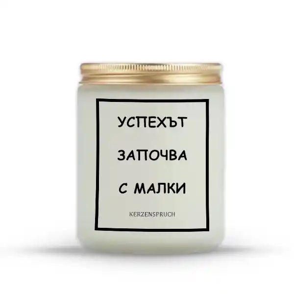KERZEN BESCHRIFTUNG BULGARISCH – „УСПЕХЪТ ЗАПОЧВА С МАЛКИ СТЪПКИ.“ 🚶♂️💫