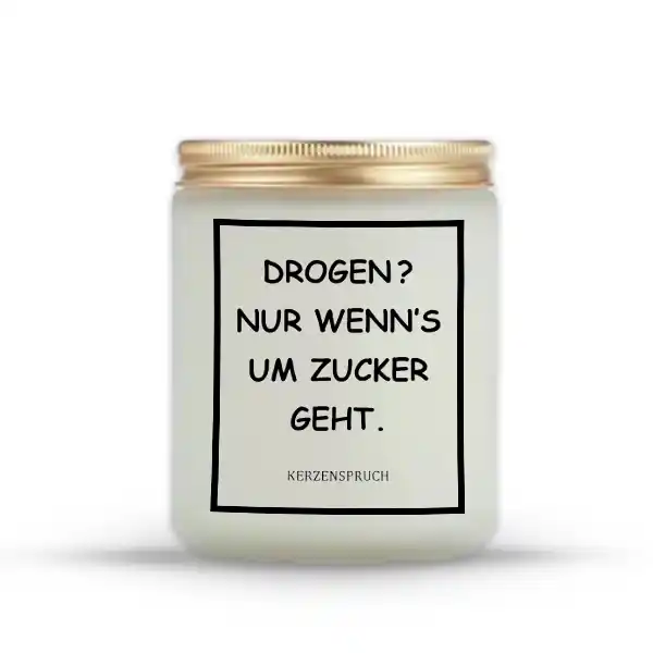 KERZEN DOPE EXKLUSIV bringt eine frische, humorvolle Note in dein Zuhause. Der Spruch „DROGEN? NUR WENN’S UM ZUCKER GEHT.“ sorgt nicht nur für Lacher, sondern setzt ein klares Statement für einen unbeschwerten Lifestyle. 🌟 Ob als Geschenk für Freunde oder als Statement für dein eigenes Heim – diese Kerze verbindet Witz, Style und einen exklusiven Duft, der jeden Raum verzaubert.