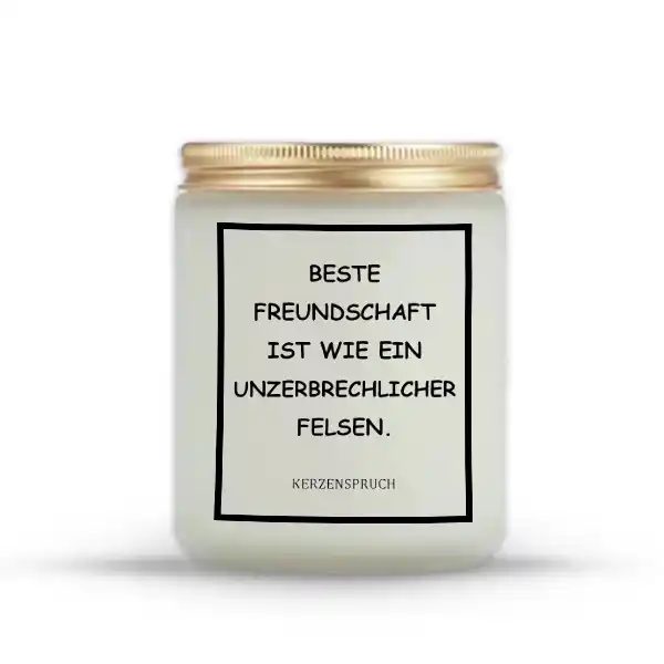 Der Spruch „BESTE FREUNDSCHAFT IST WIE EIN UNZERBRECHLICHER FELSEN.“ macht diese Kerze zu etwas Besonderem. Er steht für die Verbindung, die auch dann hält, wenn es schwierig wird. Mit Kerzen für entspannte Momente kannst du genau dieses Gefühl teilen – als kleine Erinnerung, wie wertvoll echte Freundschaft ist.
