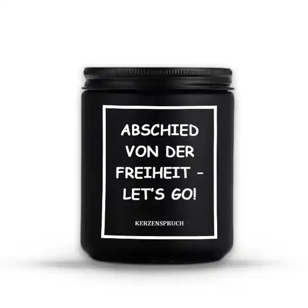 Suchst du ein besonderes Geschenk für jemanden, der das Leben liebt und jede Party feiert? Diese Kerze mit dem motivierenden Spruch „ABSCHIED VON DER FREIHEIT – LET’S GO!“ ist genau das Richtige. Sie verbindet Style, Duft und Aussagekraft in einem.