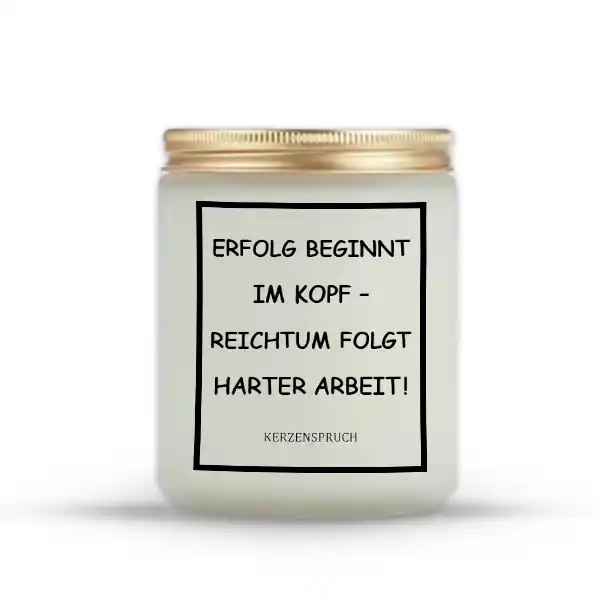 Kerzen für die Motivation als Geschenk „Erfolg beginnt im Kopf – Reichtum folgt harter Arbeit!“