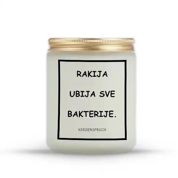 Ob für dich selbst oder als Geschenk – diese Kerzen verbinden Qualität mit einer originellen Botschaft. „RAKIJA UBIJA SVE BAKTERIJE.“ sorgt für Schmunzeln und positive Stimmung, während die ätherischen Öle Körper und Geist entspannen. Ein originelles Präsent für Freunde und Familie.
