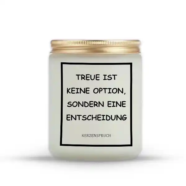 TREUE IST KEINE OPTION, SONDERN EINE ENTSCHEIDUNG. Dieses Zitat erinnert dich daran, wie wichtig Beständigkeit ist – genauso wie die entspannende Wirkung der Feuermond Kerze. Wenn du Kerzen für Entspannung suchst, findest du hier eine handgemachte Kerze, die mit Lavendel und Kamille deine Sinne beruhigt und für einen entspannten Moment sorgt.