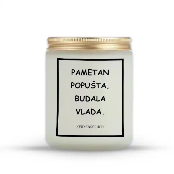 Kerzen für Entspannung im Wohnzimmer sind mehr als nur Dekoration – sie bringen Wärme, Ruhe und eine besondere Stimmung in deinen Alltag. Mit dem augenzwinkernden Spruch „PAMETAN POPUŠTA, BUDALA VLADA.“ laden sie dich dazu ein, Dinge mit Gelassenheit zu betrachten und dich in deinem Zuhause rundum wohlzufühlen. Egal ob allein, mit Familie oder bei Besuch – diese Kerzen schaffen eine angenehme, entspannte Atmosphäre.