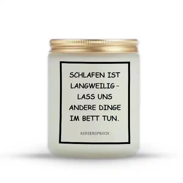 Der Produktname SCHLAFEN IST LANGWEILIG – LASS UNS ANDERE DINGE IM BETT TUN. ist frech, verspielt und genau das, was diese Kerzen transportieren: Lust auf Nähe, auf Genuss, auf alles außer Alltag.
