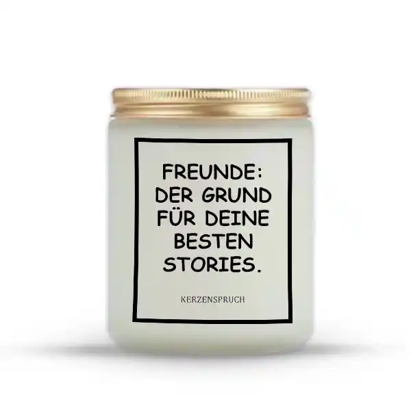 Der Produktname „FREUNDE: DER GRUND FÜR DEINE BESTEN STORIES.“ trifft mitten ins Herz. Er bringt auf den Punkt, was wahre Freundschaft ausmacht: gemeinsame Erlebnisse, Lachen, Abenteuer und Erinnerungen, die ein Leben lang bleiben. Eine Kerze mit diesem Spruch wird zu einem liebevollen Symbol für all das, was ihr miteinander teilt – und für all das, was noch kommt.