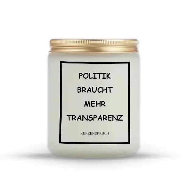 In einer Welt voller Diskussionen, Umbrüche und Meinungen setzen unsere Kerzen für Gerechtigkeit und Politik ein sichtbares Zeichen. Mit dem starken Zitat „POLITIK BRAUCHT MEHR TRANSPARENZ“ wird diese Kerze zum Statement für alle, die sich nach Klarheit, Ehrlichkeit und Verantwortung sehnen – in der Gesellschaft und im persönlichen Umfeld.