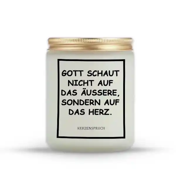 Der Spruch „GOTT SCHAUT NICHT AUF DAS ÄUSSERE, SONDERN AUF DAS HERZ“ ist eine Einladung, das Leben mit einem offenen Herz zu leben und darauf zu vertrauen, dass du in deinen Herausforderungen nicht allein bist. Diese Kerze fördert die spirituelle Ruhe und hilft dir, auf den Glauben zu vertrauen, der in deinem Inneren wohnt.