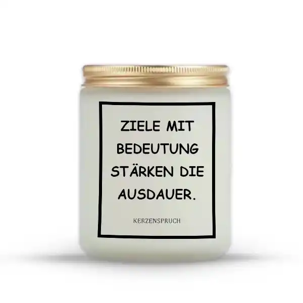Hol dir jetzt die Kerzen für Herzensmenschen und schenke deinem Lieblingsmenschen oder dir selbst ein Licht der Hoffnung, Ausdauer und Stärke. Der Spruch „ZIELE MIT BEDEUTUNG STÄRKEN DIE AUSDAUER“ wird euch immer daran erinnern, dass ihr die Kraft in euch habt, große Dinge zu erreichen. Bestelle jetzt und trage eine Botschaft von Liebe und Motivation in dein Leben!