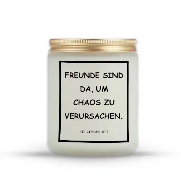 Kerzen für uns sind genau das Richtige, wenn du besondere Momente mit deinen Freund:innen stilvoll gestalten möchtest. Der freche Spruch „FREUNDE SIND DA, UM CHAOS ZU VERURSACHEN.“ macht diese Kerzen zu einem echten Highlight, das die Stimmung sofort auflockert. Mit ihrem warmen Licht und einem dezenten, angenehmen Duft schaffen sie eine Atmosphäre, in der ihr gemeinsam lachen, reden und einfach ihr selbst sein könnt. Egal, ob bei einem gemütlichen Abend zu Hause oder einem kleinen Treffen – diese Kerzen bringen die besondere Note für eure gemeinsamen Stunden.