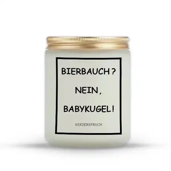 Kerzen Geburtsvorbereitung Entspannung bieten dir eine liebevolle Begleitung auf dem Weg zur Geburt. Die Kerze mit dem frechen Spruch „BIERBAUCH? NEIN, BABYKUGEL!“ sorgt für eine entspannte Atmosphäre und bringt mit Humor ein Lächeln in die aufregende Zeit der Schwangerschaft. Diese Kerze ist perfekt, um dir Momente der Ruhe zu schenken und dich auf das bevorstehende Wunder vorzubereiten.